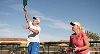 Pickleball is a paddle sport created for all ages and skill levels, and is the fastest growing sport in North America. The rules are simple, and the game is easy for beginners to learn. It can develop into a quick, fast-paced, competitive game for experienced players. Pickleball is a fun sport that combines many elements of tennis, badminton, racquetball, and ping-pong. Games are played outdoors on badminton-sized courts with a slightly modified tennis net, a paddle, and a plastic ball. We estimate there’s more Pickleball Club members than any other Trilogy club!
